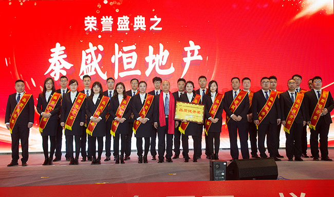 為鼓勵(lì)先進(jìn)、激發(fā)活力,會(huì)上對(duì)2018年取得突出成績的優(yōu)秀團(tuán)隊(duì)和個(gè)人進(jìn)行了隆重表彰,公司中高層分別為各獎(jiǎng)項(xiàng)頒發(fā)了榮譽(yù)證書及獎(jiǎng)牌。其中,孫董為獲得泰盛恒速度獎(jiǎng)的泰盛廣場(chǎng)項(xiàng)目頒發(fā)了榮譽(yù)獎(jiǎng)牌,鼓勵(lì)大家在新的一年里繼續(xù)奮勇爭先,積極釋放正能量,不斷開拓創(chuàng)新。