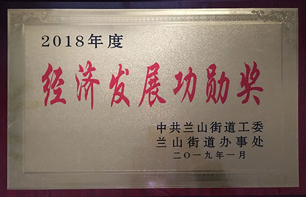 同月,再次榮獲由蘭山街道工委及蘭山街道辦事處頒發的2018年度“經濟發展功勛獎”。
